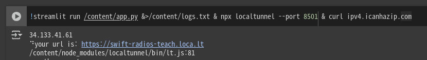 !streamlit run /content/app.py &>/content/logs.txt & npx localtunnel --port 8501 & curl ipv4.icanhazip.com